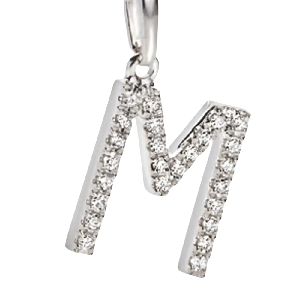 Der Anhänger ACZ 050 aus Weißgold und Zirkonia in Form des Buchstabens M weist folgende Merkmale auf: