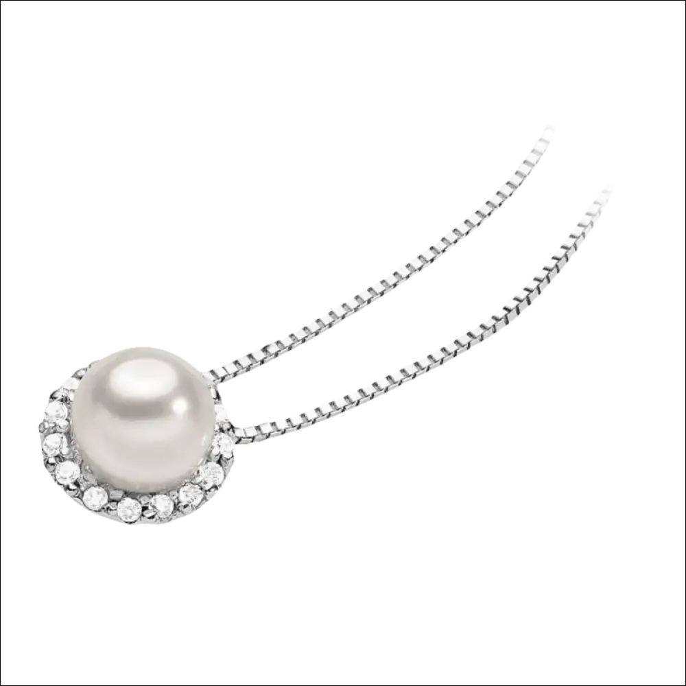 White gold necklace with pearl and zirconia pendant - ref. AGP 028 by AMBROSIA