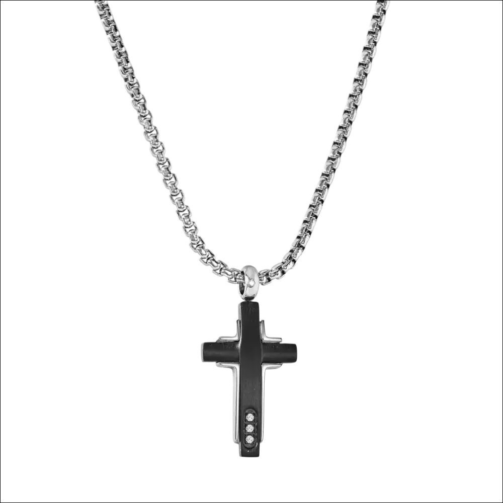 This elegant COMETE men's necklace from the Zip collection combines strength and style with its steel cross embellished with black PVD and sparkling zirconia. The contemporary design and superior quality of the materials make this UGL 754 men's necklace perfect for those who want to stand out with a touch of masculine sophistication. The COMETE men's cross necklace is a symbol of character that, with its personality, completes any outfit.
