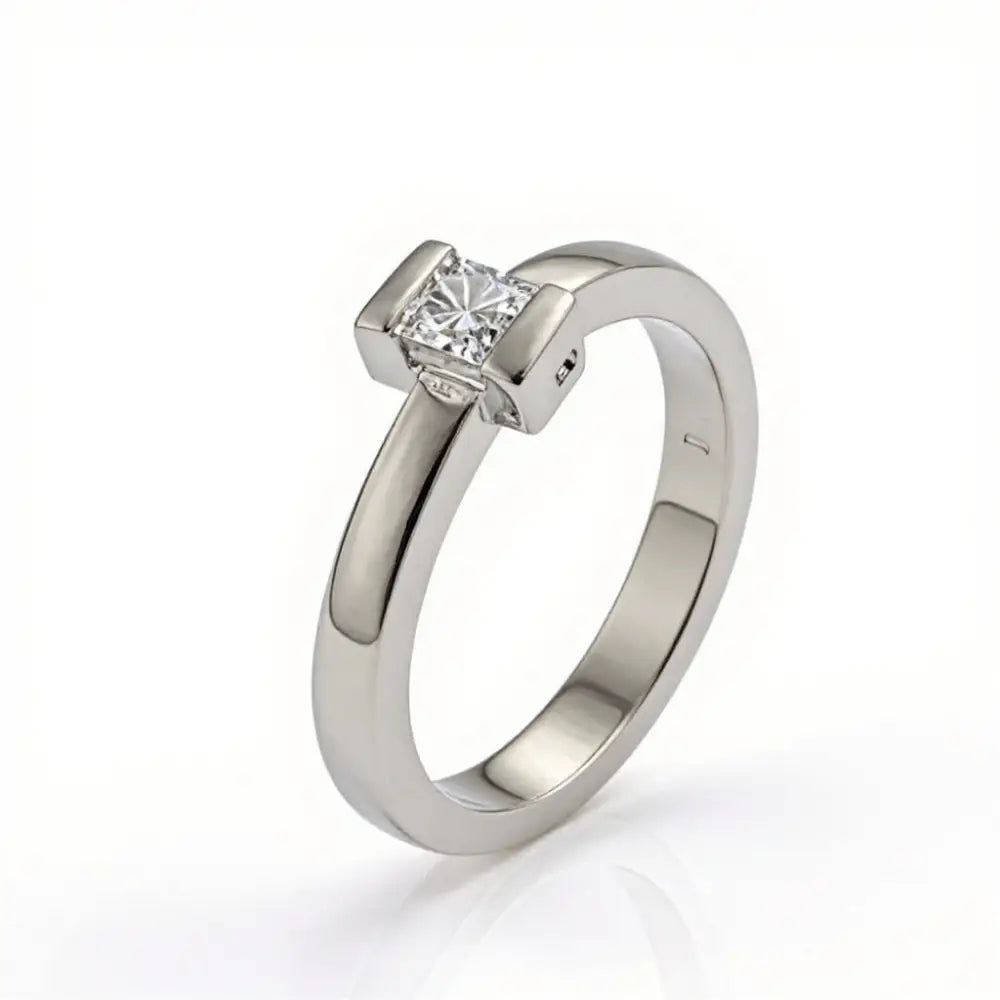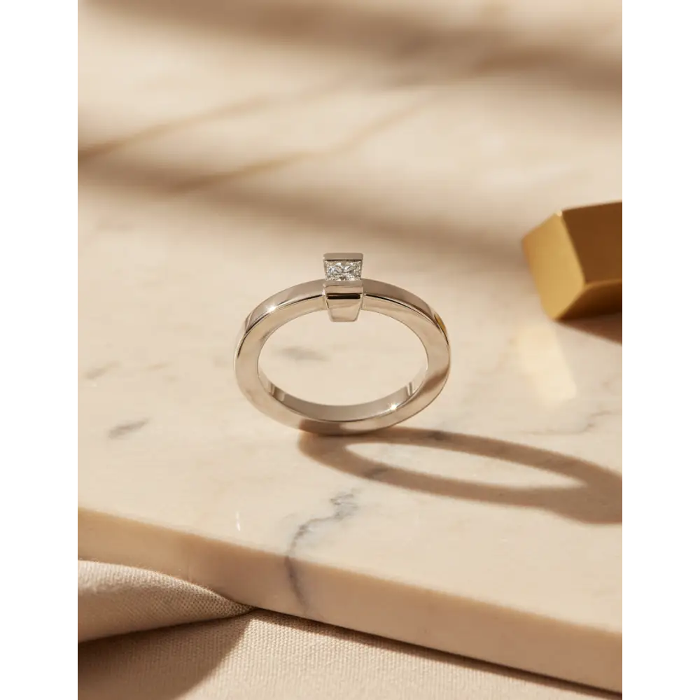 Anello oro bianco diamante solitario taglio Princess di CEVA GIOIELLI