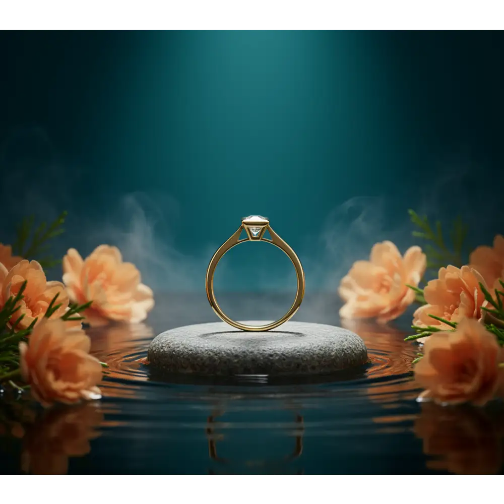 Anello Oro Giallo 750/1000 e Diamante Carré 0,16 ct