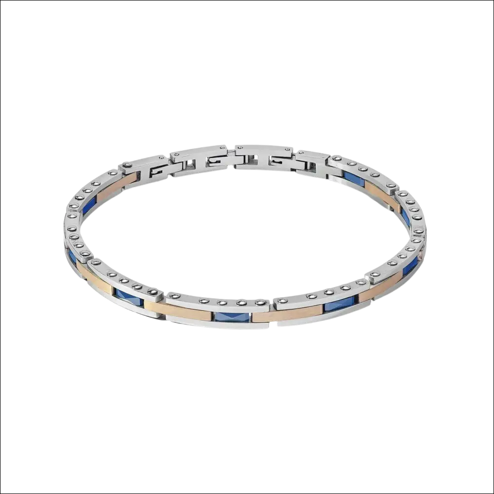 Bracciale uomo COMETE in acciaio, PVD rosé e ceramica blu, collezione Tyres - UBR 1151