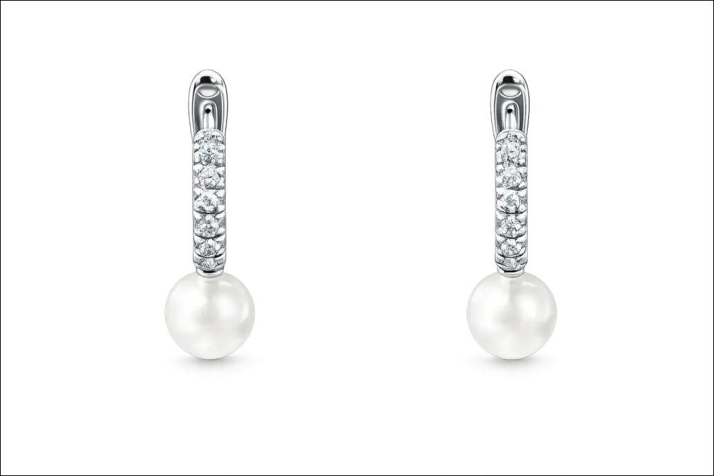 Orecchini cerchio diamanti e perla oro bianco Salvini