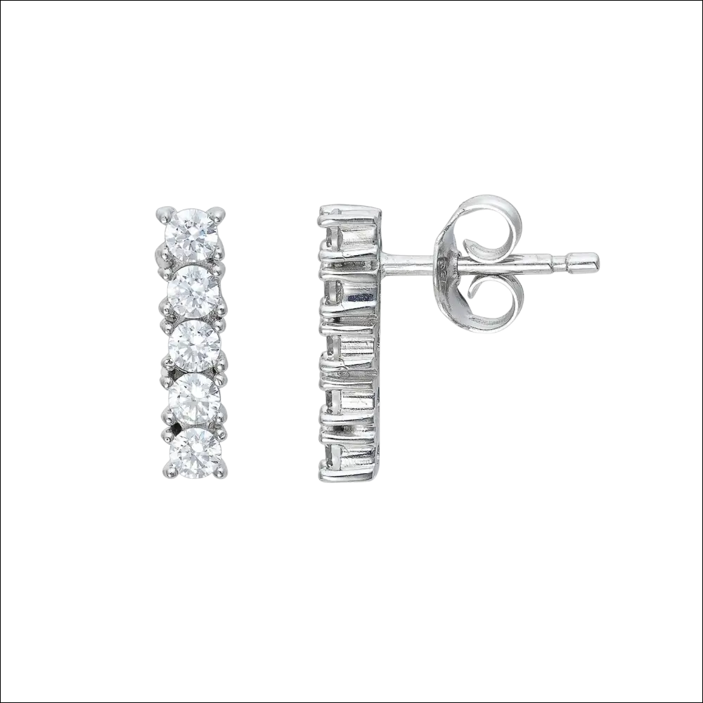 Sugli orecchini pendenti oro bianco e zirconi sono incassati cinque luminosissimi cubic zirconic per brillare sui lobi di colei che li indosserà.